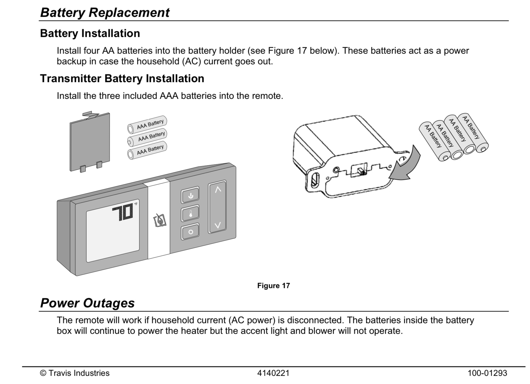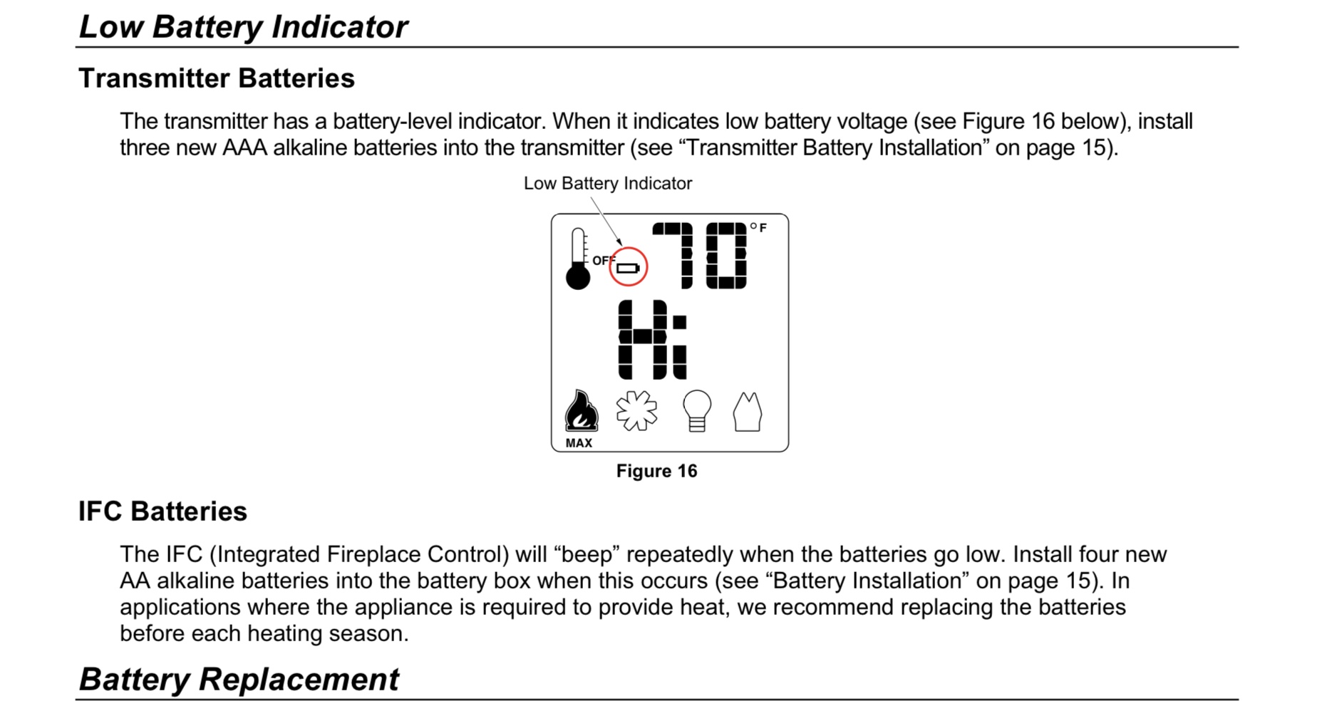 If you have no power in your home or business, the transmitter will run temporarily with the batteries, but during an ice storm with days of no power, your fireplace will stop working.