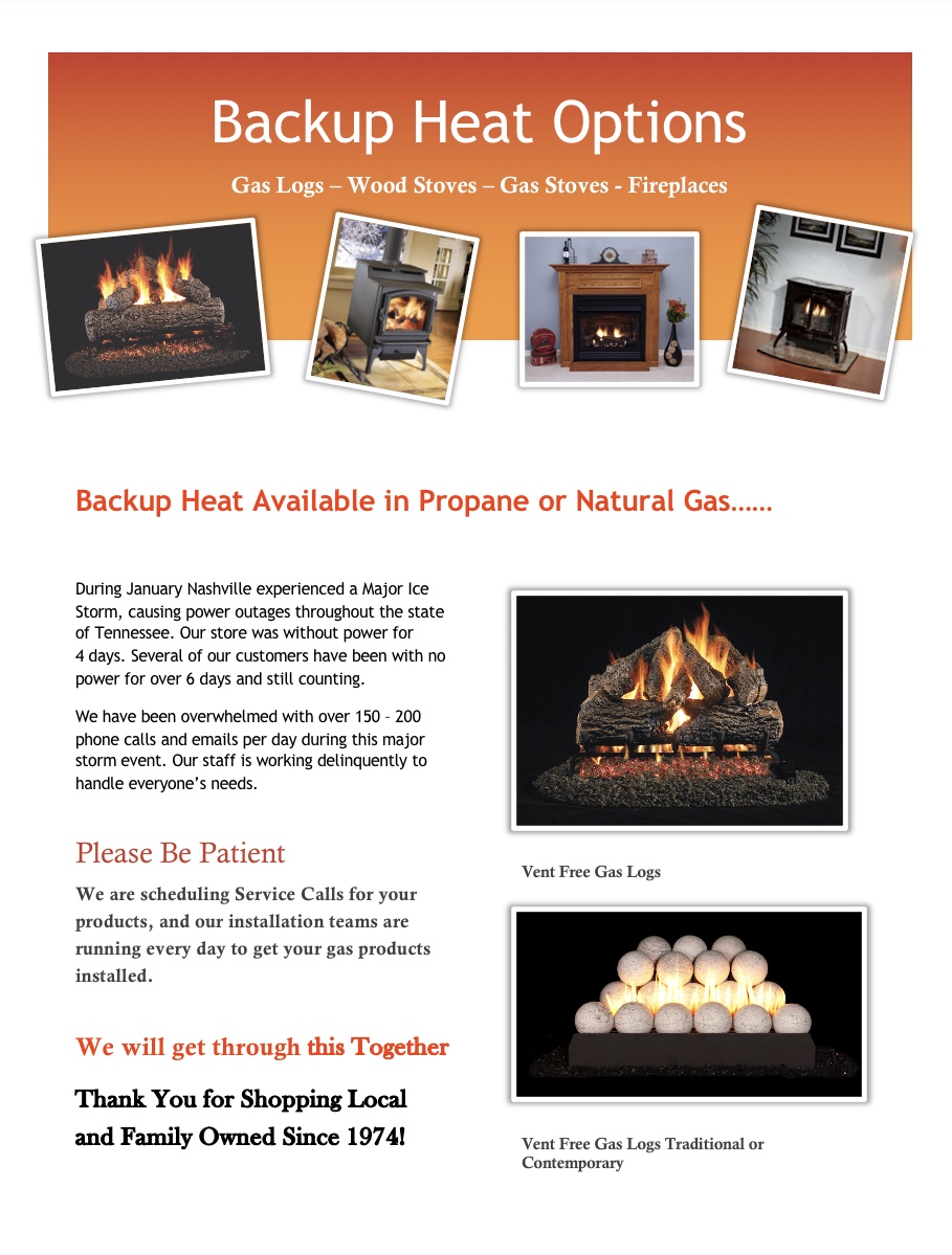 If you currently have a wood burning fireplace and you have Natural or Propane gas in your home or business. This is an easy fix to add backup heat, so you will be prepared in the future for any power outages.