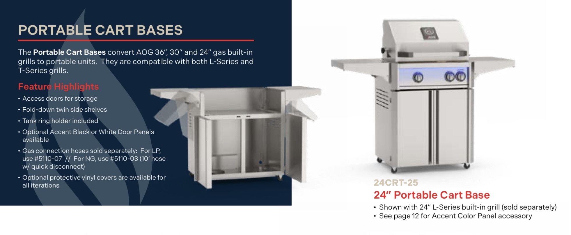 SKU AOG30TN – T Series Gas Grill – 2026 The T Series grill is available in 24″ – 30″ -36″ Stainless Steel Finish -No  Lights!