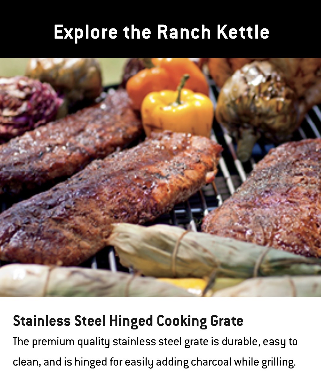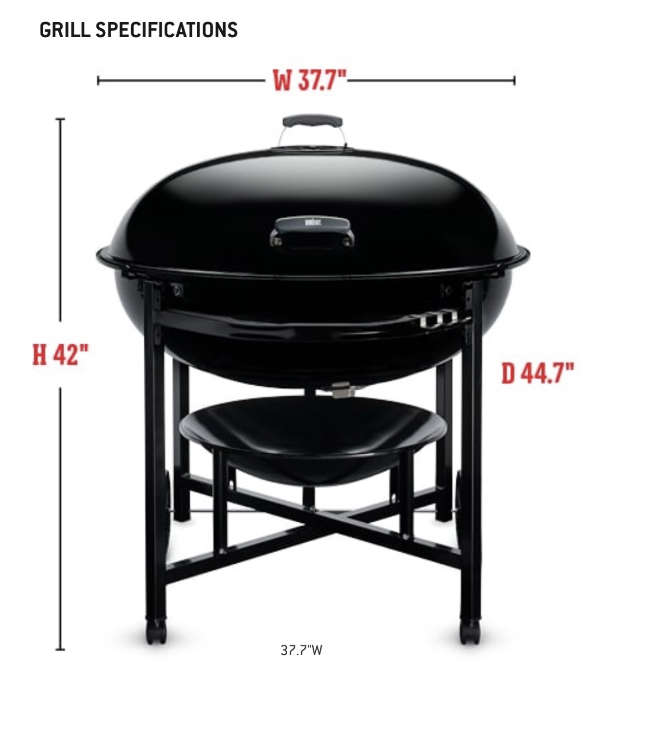 Weber Ranch Kettle - 42”H x 37.7” W x 44.7” D with Lid closed Diameter 37” Cooking Area 1,104” Fuel - Charcoal