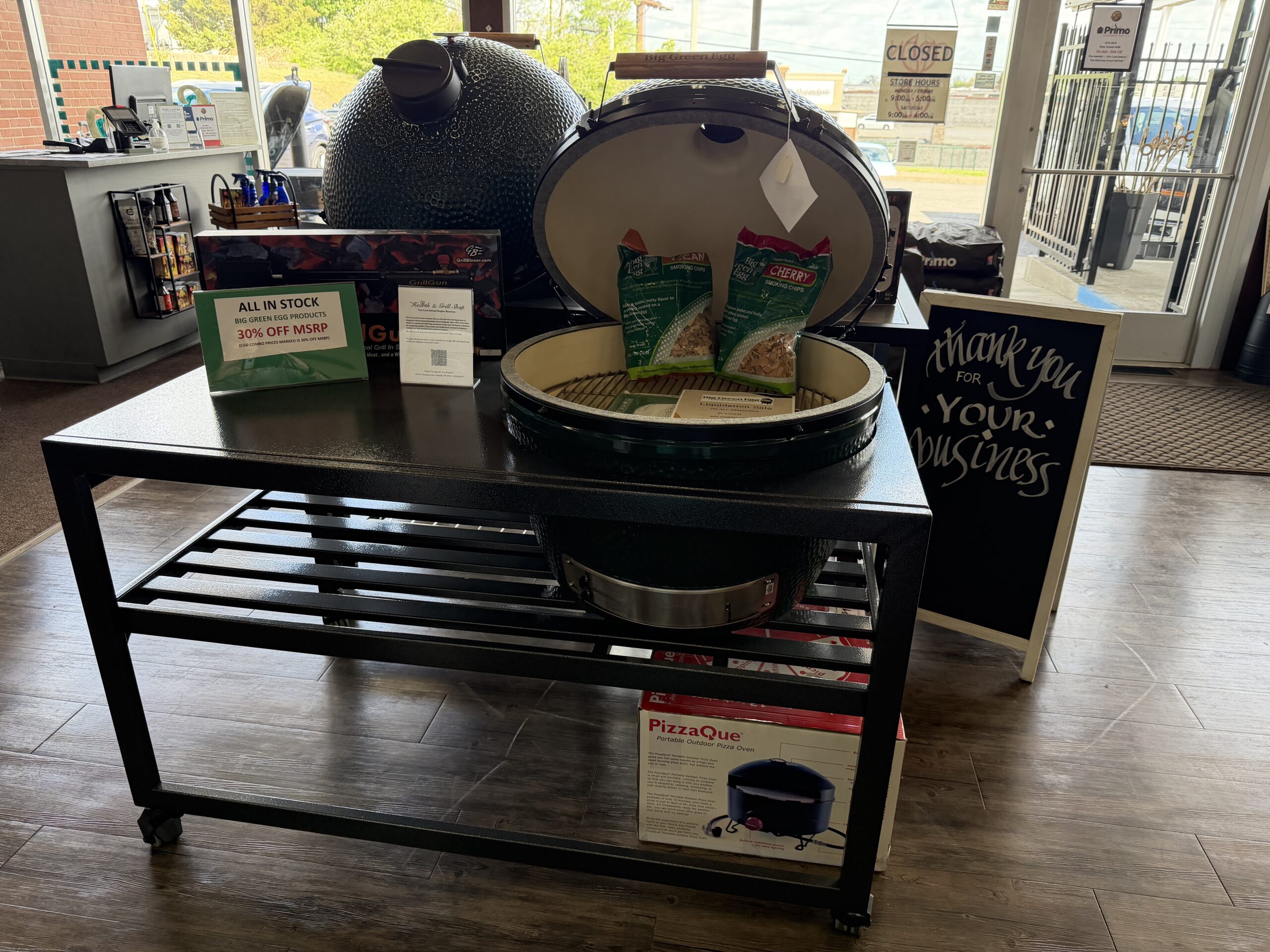 These are the last two XL Big Green Eggs in Carts At Huge Savings!