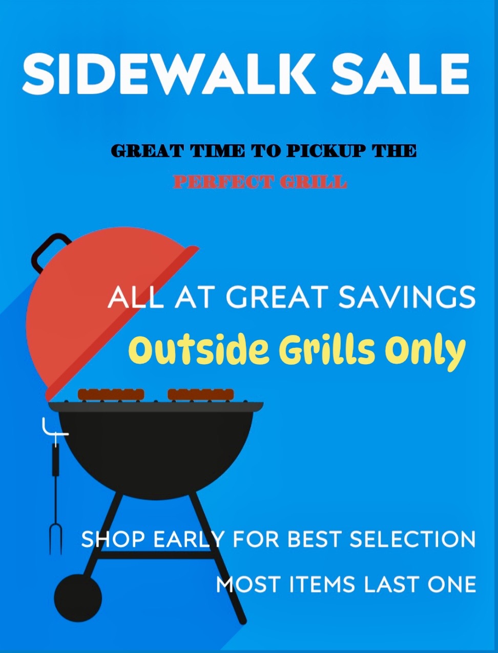 CHECKOUT 🔥 – Grills Outside during our Sidewalk Sale. All Grills are Tagged with the Sidewalk Sale Price Tags. Shop Early some Grills Only One In Stock!