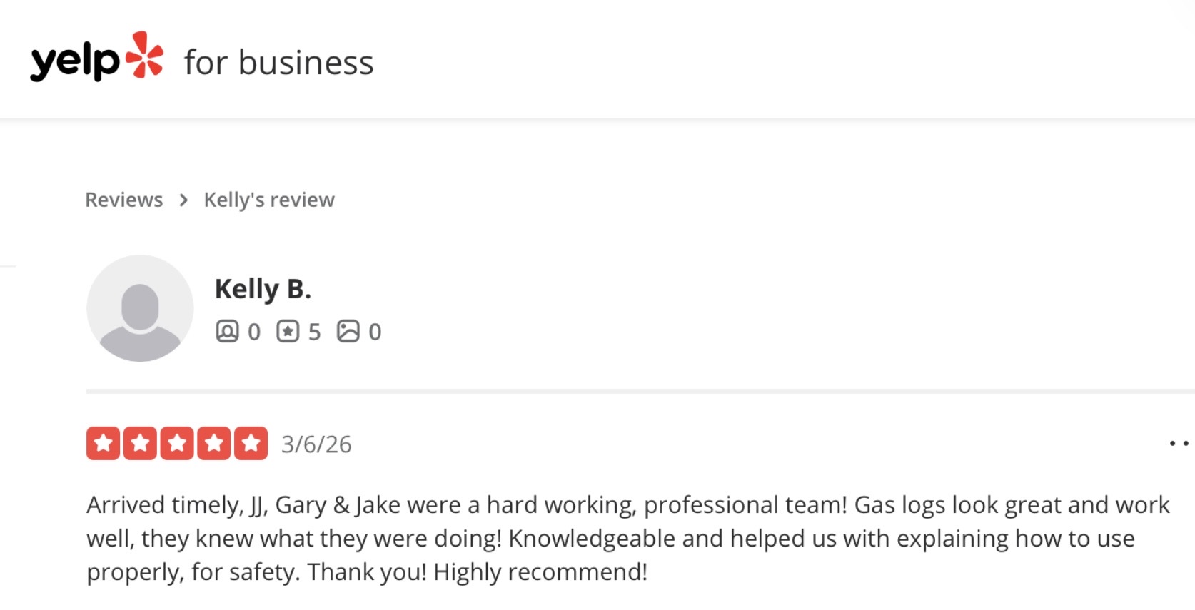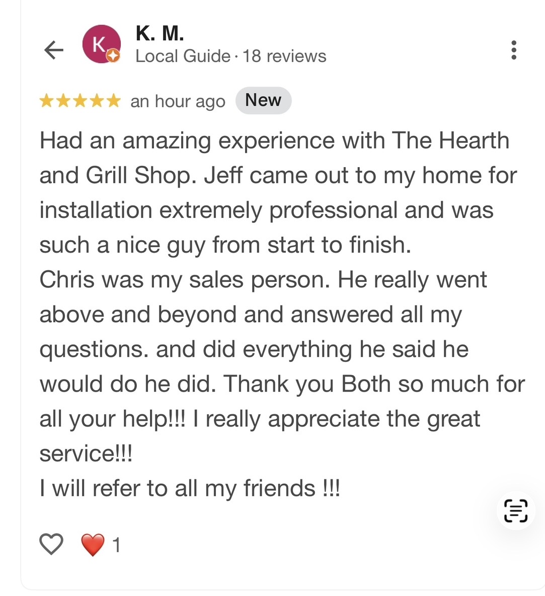 Love when our customers give our employees 5-Star Reviews.